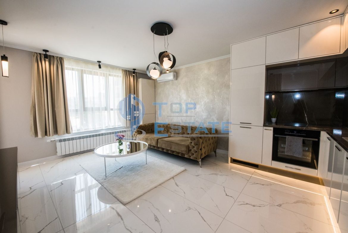 Топ Естейт Недвижими имоти Ви предлага под наем двустаен, новопостроен, луксозен, газифициран апартамент с надземно паркомясто в квартал Бузлуджа, град Велико Търново. Жилището е разположено на четвърти етаж в новопостроена сграда с много добре поддържани общи части и два асансьора, като единия от тях е товарен. Апартаментът се сътои от спалня, всекидневна с кухненски бокс, баня с тоалетна, коридор и тераса, като площта му е 70 кв.м, както и избено помещение от 4 кв.м. Отоплението в имота е осигурено чрез газ, като водата също е на газ, охлаждането като има поставени климатици, също така са поставени радиатори в спалнята и всекидневната, а в банята има подово отопление. Жилището се отдава с наличното висок клас обзавеждане и оборудване, като разполага със съдомиялна, пералня, хладилник, фурна, котлони и други, като всички електроуреди са енергоспестяващи, което осигурява по – малки разходи. Имота разполага с интернет и има поставени два смарт телевизора. Към апартамента влиза и надземно паркомясто, което е голямо удобство и ще ви спести много време в търсене на свободни паркоместа. В непосредствена близост се намират Lidl, Kaufland, училища, детски градини, спирки на градския транспорт, заведения и множество други удобства. Номер на оферта 3468. We speak English and German.